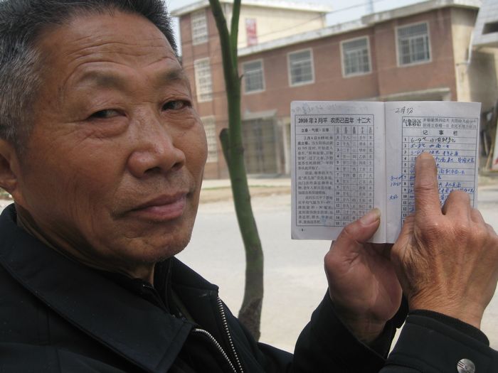 8年来,他每天坚持收看安徽电视台和安庆电视台的天气预报节目,及时在农事历书上以表格方式记下每天的天气实况。他平时还注意将每年的天气变化进行比较,以便安排农业生产,周围的农工和农民也经常向他请教相关气象知识,他被当地人成为“气象农工”。